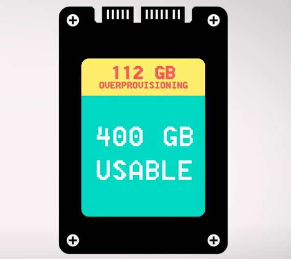 Terminato l’assemblaggio di un SSD, il produttore può riservare una percentuale aggiuntiva della capacità totale alle funzioni di over-provisioning (OP). Tale operazione viene eseguita durante la fase di programmazione del firmware. L’over-provisioning migliora le prestazioni e incrementa la resistenza dei nostri SSD, che possono durare più a lungo proprio grazie alla maggiore quantità di storage NAND Flash a disposizione del controller SSD, così da ridurre l’usura a carico della memoria NAND Flash durante tutto il ciclo di vita operativa. Il calcolo base dell’overprovisioning è definito secondo un calcolo di (Capacità fisica - Capacità utente) / Capacità utente. Tuttavia non è sempre vero. Qui un approfondimento più dettagliato.