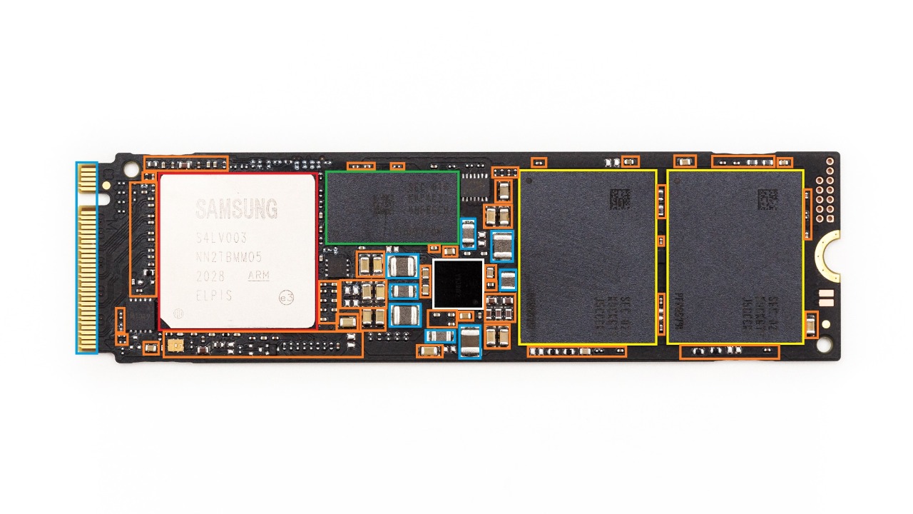 Tutti questi produttori vendono le loro DRAM a qualsiasi tipo di azienda che produce SSD e le producono in diverse generazioni, proprio come con le RAM: DDR, DDR2, DDR3 e DDR4. Più la generazione è alta e più la DRAM sarà veloce (meno latenza) ed efficiente (meno consumo). Più è grande la DRAM e più sarà “duratura” perché sarà in grado di archiviare più metadata. La DRAM può essere in uno o più chip, solitamente con un massimo di due (per esempio nei Kingston KC2000 e KC2500). Inoltre, può essere su entrambe le facce del PCB.