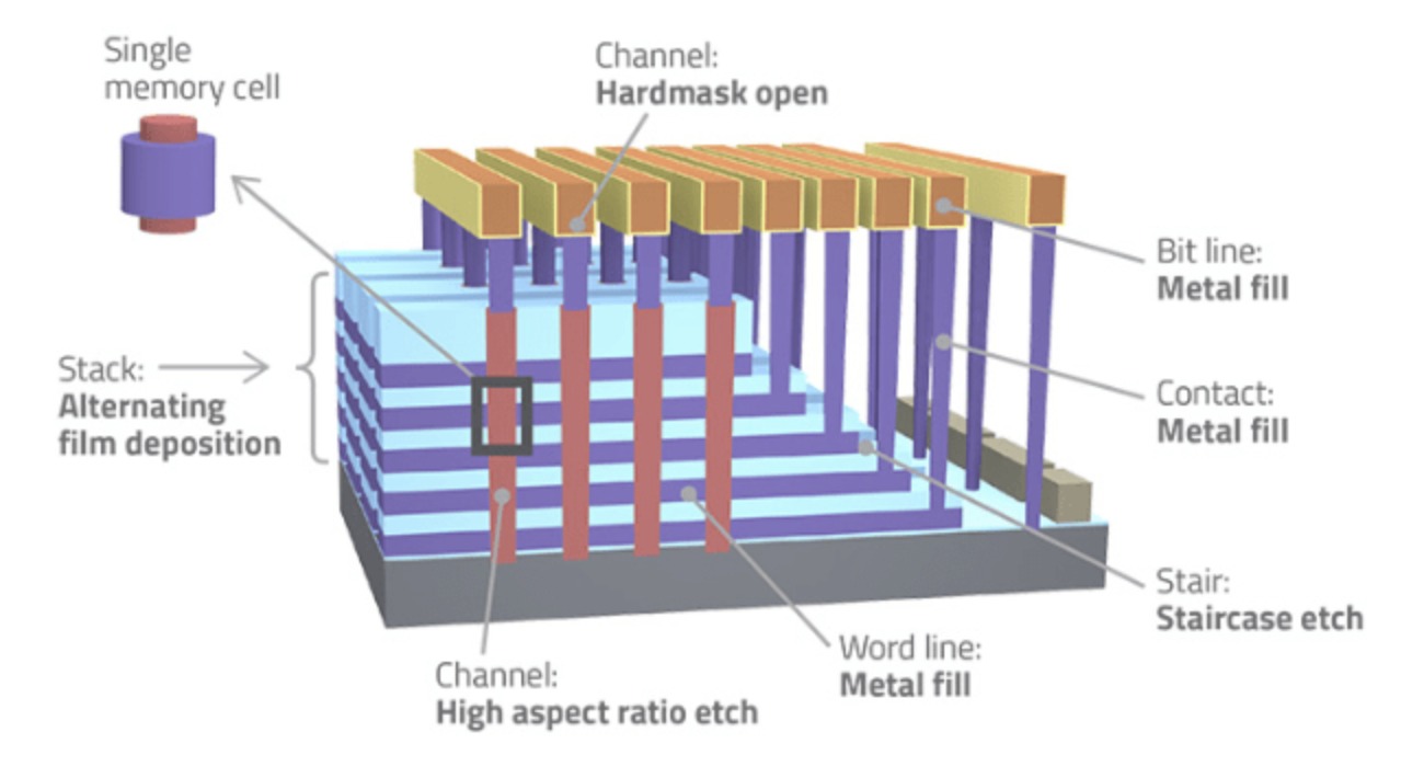Qui una rappresentazione di una NAND Flash da 96L in 3D: